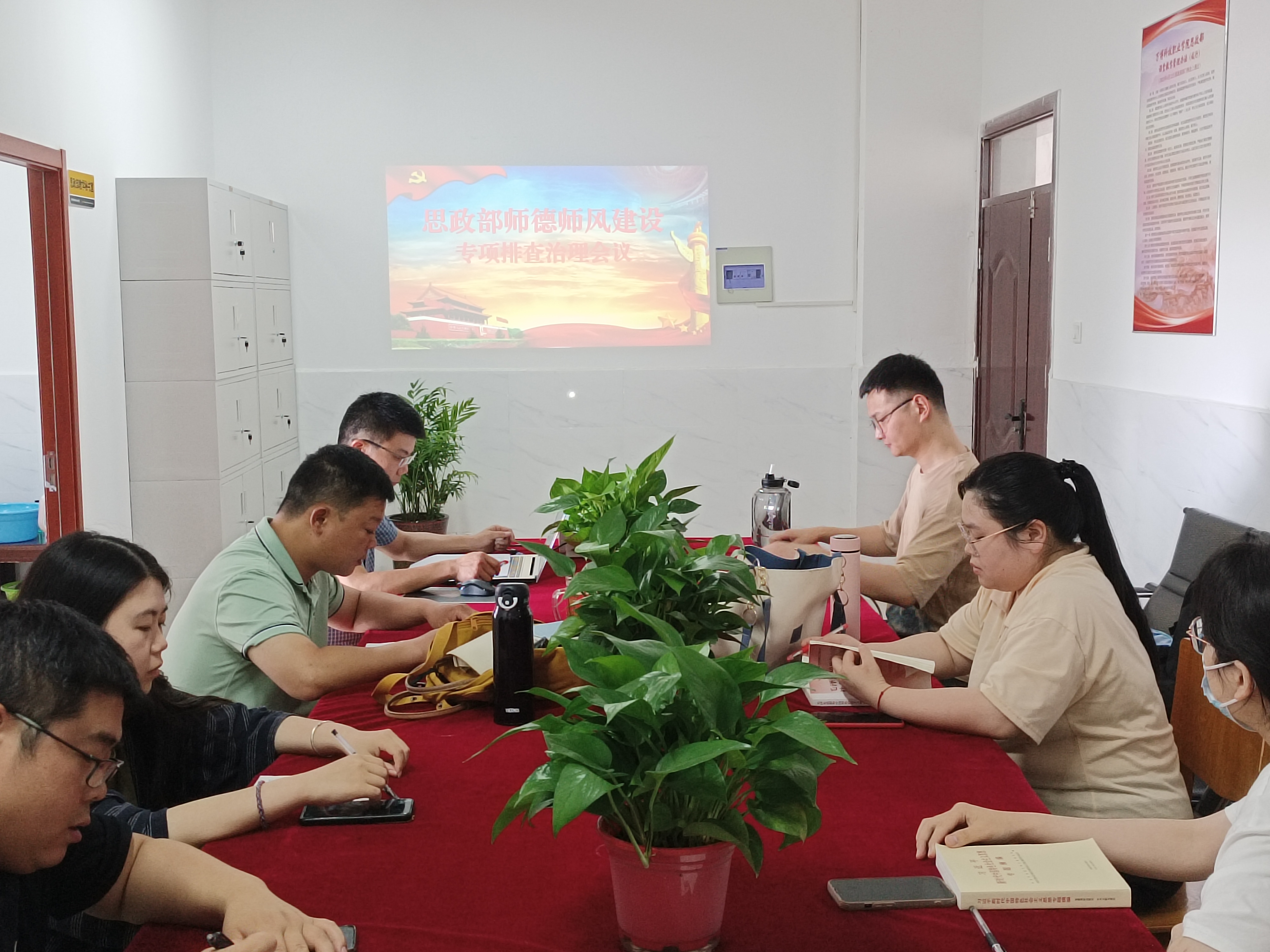 根据学校师德师风建设工作领导小组的统一部署,6月7日,思政部在一教思政部办公室召开2023年师德师风建设专项排查治理会议👻,思政部全体教职工参加会议,会议由思政部主任徐达余主持。