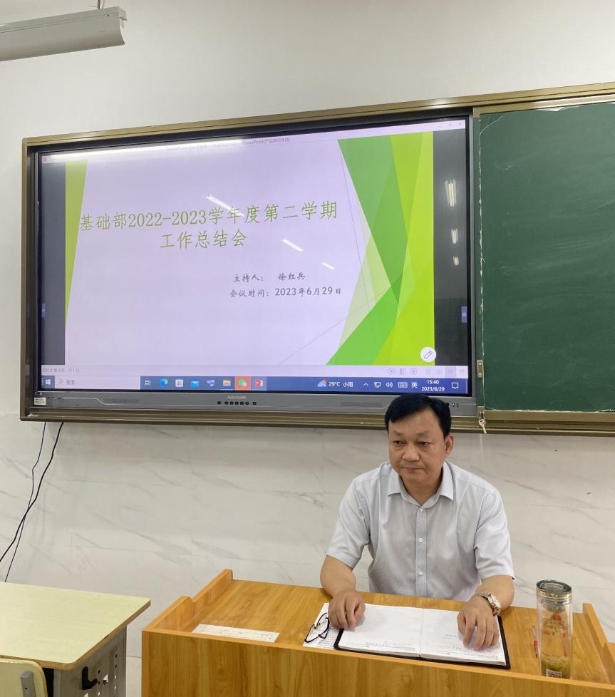 6月29日下午💂🏿,基础部在1505教室召开2022-2023学年第二学期部门工作总结会议,基础部全体教师参加会议,会议由基础部负责人徐红兵主持。