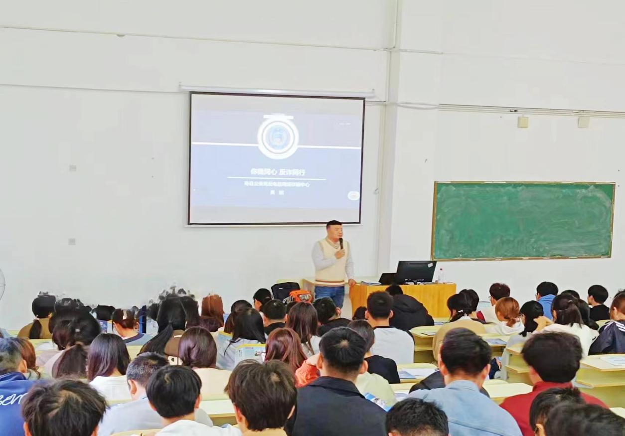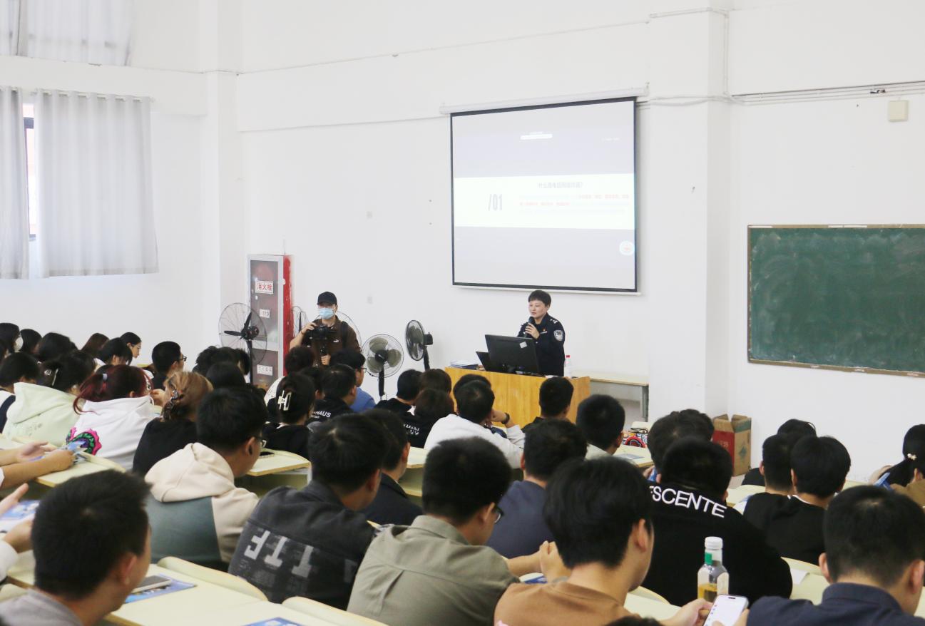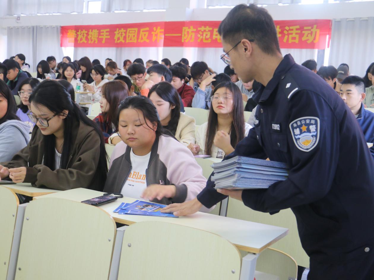 为进一步提高彩神广大师生员工对电信网络新型违法犯罪的防范意识和能力,10月11日下午,寿县公安局新桥派出所联合彩神学工部、保卫部进行校园精准宣传防范电信诈骗“你我同心,反诈同行”主题宣讲活动。新桥派出所副所长倪有为🧧、县局刑侦大队机动中队副中队长吴娟及三位民警同志进行宣讲。副校长马赞,学工部、招就办主任江仁昆🙅🏽♂️,保卫部副部长欧阳大军以及新生共计两千余人参加活动🤕。活动由学工部部长助理高嵩主持。