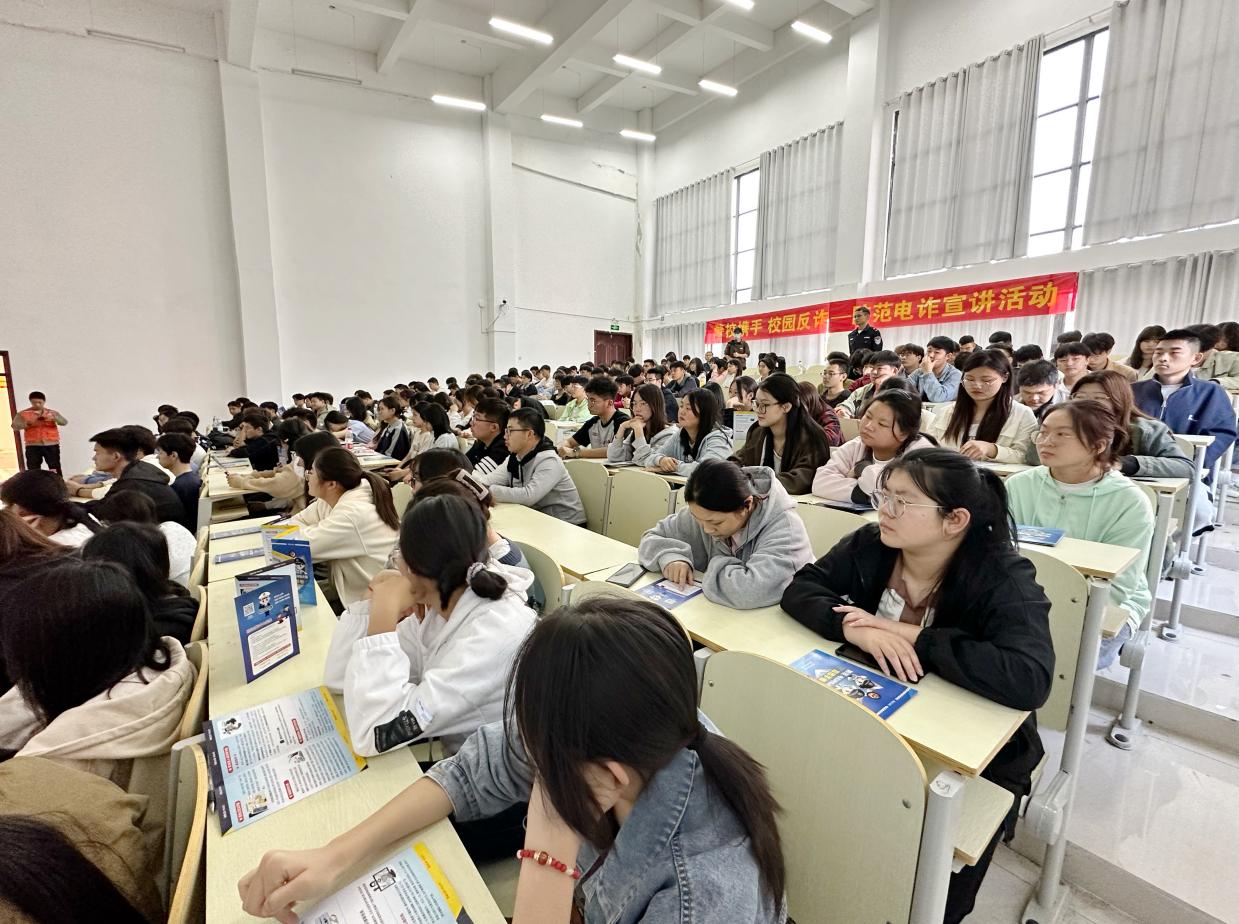 吴娟警官通过丰富的图片、文字以案释法,深入浅出地为同学们讲解了不法分子常用的诈骗手法和作案特点,加深大家对反诈知识的了解♋️。宣讲中❤️🔥🧑🏻🦯➡️,她对发案率较高的“虚假游戏交易诈骗”、“冒充老师、熟人诈骗”等学生群体中易发生电信诈骗形式进行深入剖析🙅♂️,引导同学们识别和防范电信诈骗的方法,强调远离电信网络诈骗要做到“未知链接不点击、陌生来电不轻信、个人信息不透露、转账汇款多核实”,并向同学们发放反电诈宣传单页👒,引导学生们积极安装“国家反诈中心”APP。与此同时,在各教室利用腾讯会议参与观看的师生与宣讲现场进行积极讨论互动,气氛热烈,反诈宣传活动取得了良好效果。大家纷纷表示不仅提升了识别诈骗手段的能力以及意识,今后还要当好“宣传员”,提醒身边人不要上当受骗🤏🏿。
