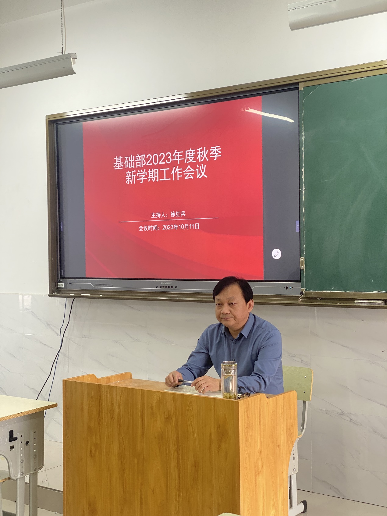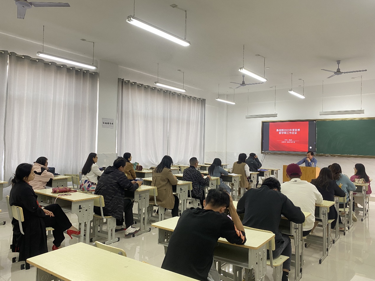 10月11日下午,基础部在1505教室召开秋季新学期工作会议,安排部署新学期部门重点工作,基础部全体人员参加会议。会议由基础部负责人徐红兵主持。