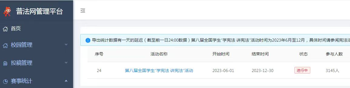 本次活动为期一周,活动期间全校各级团组织积极响应组织开展“宪法宣传周”系列活动💒。校团委通过学校共青团公众号面向全校团员青年推送宪法知识🦸🏻,各班级团支部召开“学宪法”专题学习会学习宪法原文节选内容👮🏽♂️。同时,组织全校学生通过“宪法卫士”app进行第八届全国学生“学宪法 讲宪法”的学习,全校掀起了学习宪法的热潮,截止目前,全校共有3145名学生参与学习。