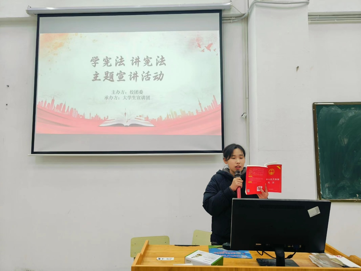 12月4日是国家第10个宪法日🤦🏻。当天早晨🩲,校学生会组织开展“宪法晨读”活动🧋,由学生会主席团成员领读宪法序言及正文中的部分章节、条款,全体同学齐声跟读💓,大家精神饱满,庄严肃穆⛄️,声声入耳,用心体会宪法的神圣与庄严;大学生宣讲团利用晚自习时间在多媒体教室进行宪法宣讲会,各二级学院学生会、各学生组织等180余名团学骨干参加。宣讲人员围绕宪法赋予公民的权利和义务、我国宪法发展历程和主要内容,用大家听得懂、记得住、乐意学的方式讲出来⛄️,同时与大家积极互动😵💫,同学们踊跃发言🧝🏿,分享学习心得🎰,现场氛围浓烈🧑🧑🧒🧒。