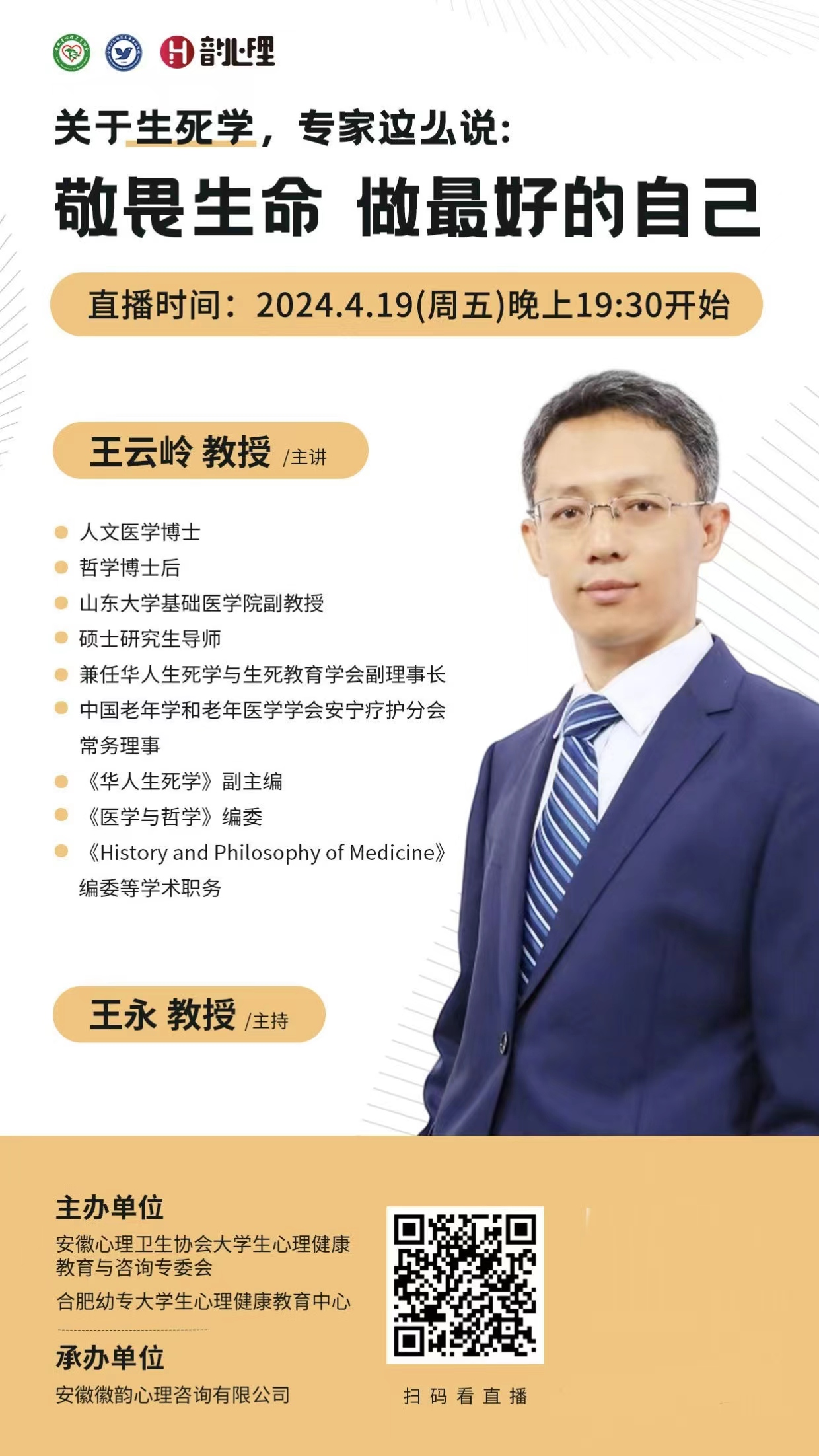 王云岭教授就霸凌与自杀:触目惊心的校园伤害事件,没有目标与动力:时代的空心病,生命作为人生中的至善🥍,为何而活与向死而生,把握青春,做最好的自己等五个方面全面阐述《敬畏生命,做最好的自己》课程🤸🏿♀️,欢迎大家扫码收看🔚。