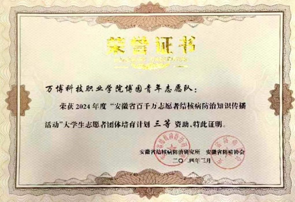 近日,由安徽省结核病防治研究所主办的“安徽省百千万志愿者结核病防治知识传播活动”评选圆满结束。彩神博园青年志愿队荣获安徽省2024年度大学生志愿者团体培育计划资助🤘🏻。这是对彩神在结核病防治知识传播方面充分肯定,同时也为结核病防治知识在彩神的深入宣传奠定了坚实的基础👨🏽🦲🔦。