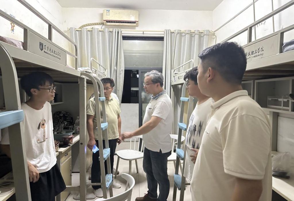 9月20日晚🏙,校党委委员💆🏿♀️、副校长马赞率领学工部𓀊👱🏻♂️、各二级学院学工负责人及辅导员走进新生宿舍🏋🏼♀️,为新生送去暖心关怀与问候。