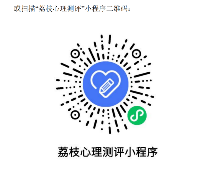第一种登陆方法是用手机微信扫描二维码登陆进入,或直接在微信小程序里搜索小程序“荔枝心理测评”
