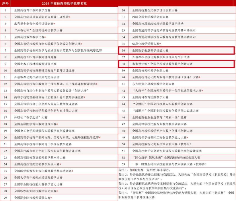 全国数字创意教学技能大赛(简称NCDCTS)和未来设计师·全国艺术设计教师教学创新大赛(简称NDTC)已获得教育部中国高等教育学会关注,纳入《全国普通高校教师教学竞赛分析报告》和《全国普通高校教师教学竞赛榜单》,成为参与院校多🧑🦽➡️、影响广泛的艺术类教师技能和教学创新权威赛事☣️。