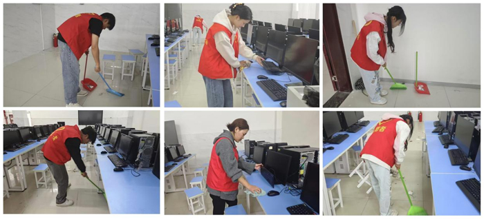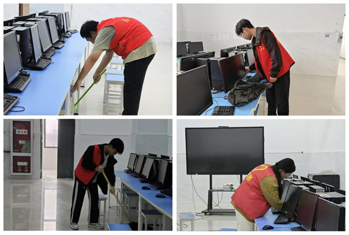 在机房里,志愿者们小心翼翼地擦拭着电脑显示屏✍🏻、主机和键盘,确保每一台设备都一尘不染🧑🏽⚕️。他们还认真清扫了机房的地面和角落,将隐藏在桌椅下、墙角边的垃圾清理干净👃🏽。在教室里,志愿者们则重点对黑板、讲台和课桌椅进行了清洁。有的同学用抹布仔细擦拭黑板👩🏿🦱🎀,有的同学将课桌椅摆放整齐🙍🏼♂️,还有的同学在扫地🦏、拖地🦣🧑🏻🦱,不放过任何一处卫生死角。经过大家的共同努力,机房和教室焕然一新,为同学们创造了更加优质的学习环境。