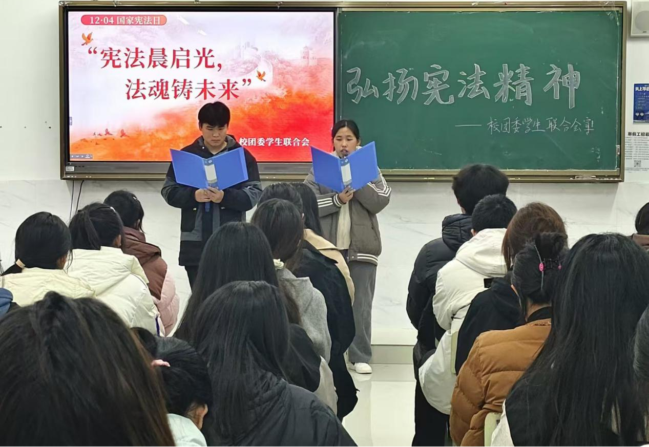 12月4日是我国第十一个“国家宪法日”🧧,校团委开展宪法晨读主题团日活动,组织团员青年在教室参与宪法晨读。活动现场,同学们齐声朗读宪法内容🦸🏻♀️,精神饱满,情绪激昂,句句铿锵有力,声声入耳👩🏿🍼,字字入心。