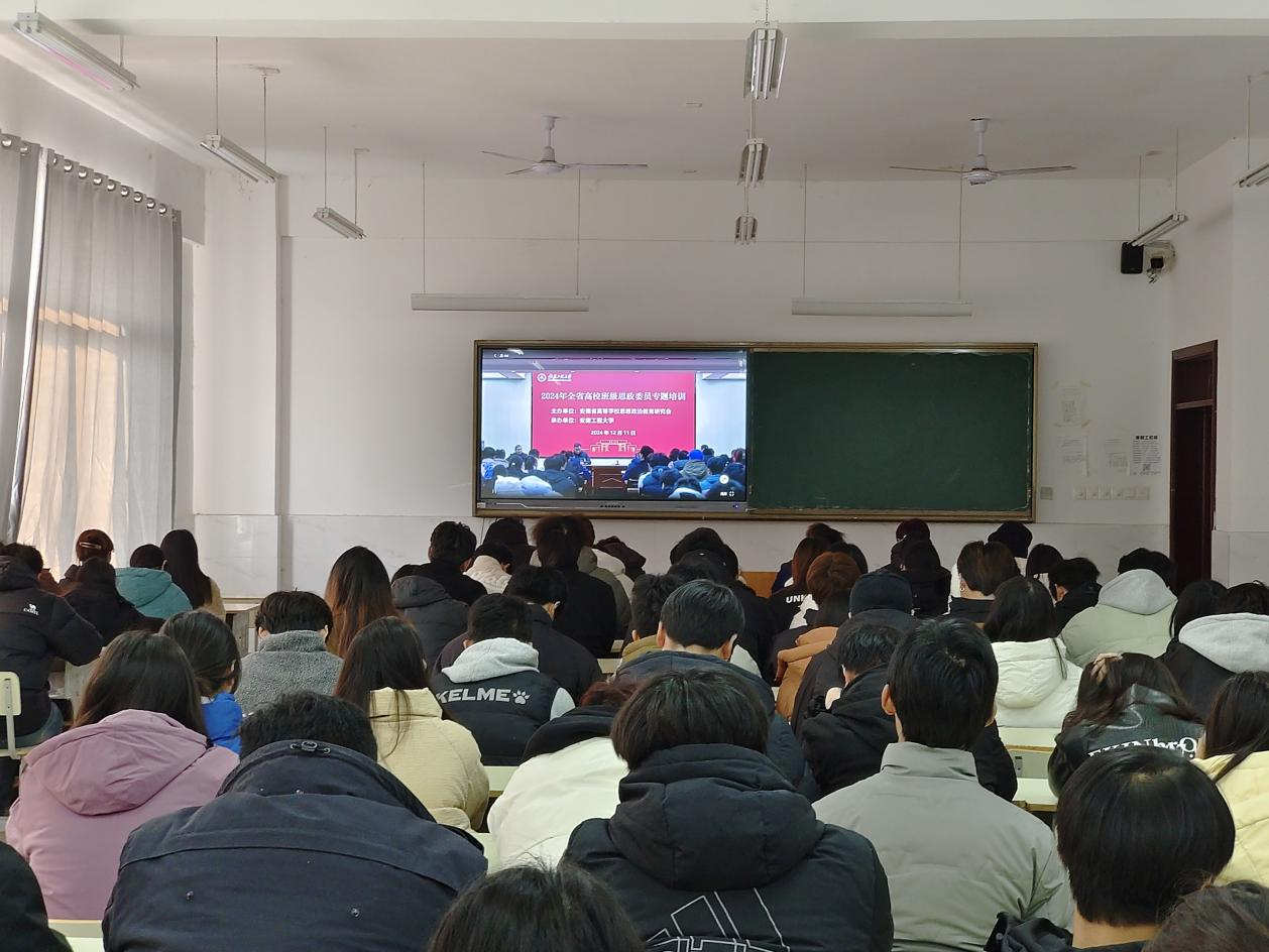为深入实施新时代立德树人工程,突出大学生在思想政治教育中的主体地位,充分发挥学生骨干桥梁和纽带作用,12月11下午🧖🏽💂🏻♀️,安徽省高等学校思想政治教育研究会组织开展全省高校班级思政委员专题培训会,彩神组织全校75名班级思政委员在2201教室参加培训🎒。