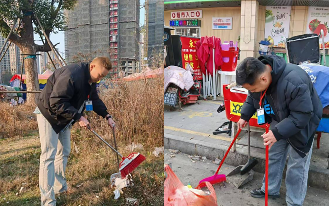 活动当天,志愿者们早早来到阳光半岛社区👳🏼♀️,他们手持扫帚、拖把💨、抹布等清洁工具,满怀热情地投入到打扫工作中。志愿者们分工明确,有的清扫社区道路🚣🏽♂️,将落叶、烟头、纸屑等垃圾清理干净;有的擦拭小区内的长椅、健身器材和宣传栏🏂🏿,使其焕然一新🧑🏽⚕️;还有的深入楼道,清理墙壁上的小广告☀️,打扫楼梯间卫生👱,不放过任何一个卫生死角🙁。尽管天气寒冷,但志愿者们热情不减🖼,干劲十足🧧,他们忙碌的身影穿梭在社区的各个角落,成为了一道亮丽的风景线🧈。