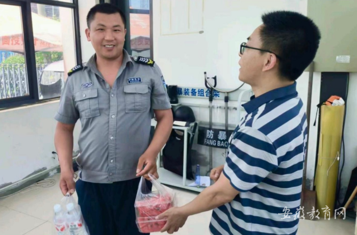 活动中🕠,工作人员将精心准备的西瓜、矿泉水等防暑降温物品一一送到教职工、保安、宿管和保洁人员的手中,感谢他们在炎炎夏日里在各自岗位上的辛勤付出🧑🏻🦱,提醒大家注意劳逸结合,做好防暑降温🚳。