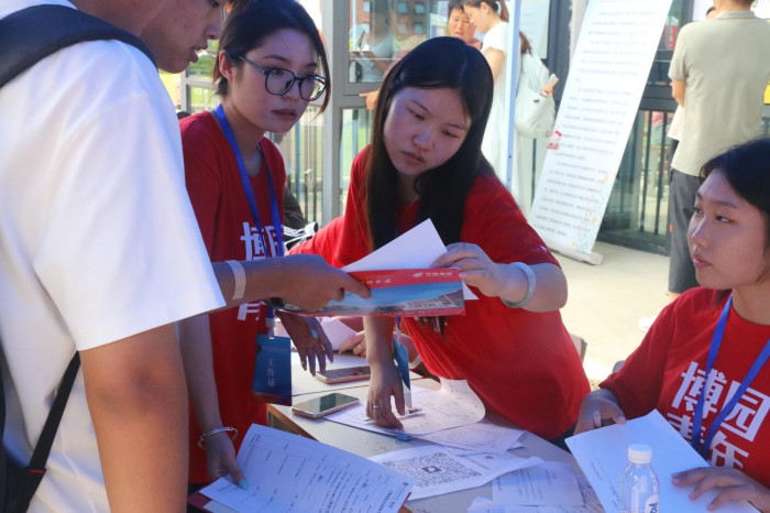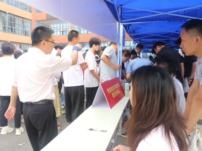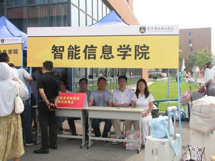 为方便新生更安全、更便捷抵达校园✳️🟨,学校团委提前部署,在合肥火车站♤、汽车站安排志愿者引导到校路线🪨;在学校大门入口🧏🏽♂️🏋🏿,保卫部精密安排,人车分流,极大地方便新生家长接送;更有学生志愿者们早早到位⛓,身着“博园青年”服装,主动接过新生手中的行李💎,指引报到流程。各二级学院于图书馆广场设置报到处,核对报到信息材料💁。此外👩🏼🔧,各报到处设置了党员服务通道,为新生入校服务添砖加瓦。