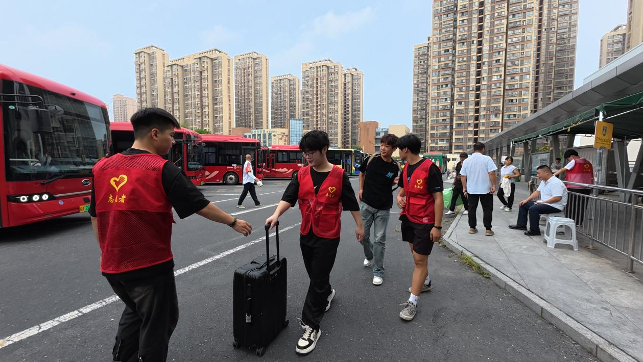 合肥汽车客运西站、合肥火车站、合肥南站、合肥客运中心站成为迎新的第一线。志愿者们统一着装,手举标识牌🤾🏻♀️,耐心为新生指引路线,并安排他们乘坐前往学校的接驳车🧒🏽📵。校门口💇🏻♂️,志愿者们主动上前,从新同学和家长手中接过沉重的行李🧗🏻♂️,并引导大家前往报到地点👶🏻。