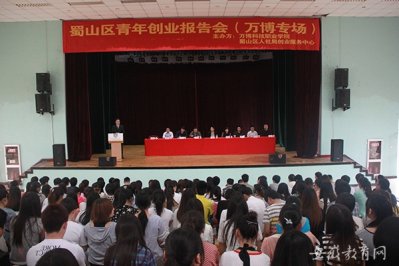2014年5月16日🎡,《合肥日报》发布题为《为青年创业传经送宝》的新闻报道。 原文如下: 5月14日,合肥万博科技学院的学生在青年创业报告
